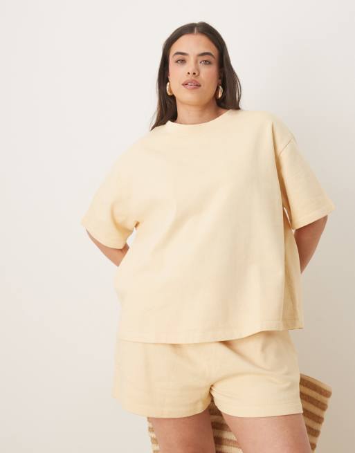 ASOS DESIGN Curve - Lysegul T-shirt i sweat-stof i firkantet pasform - Del af sæt