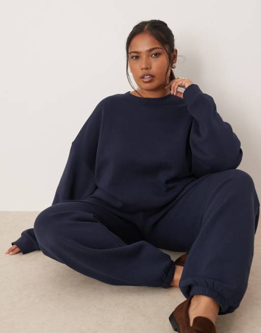 ASOS DESIGN Curve - Marineblåt sæt med børstet inderside