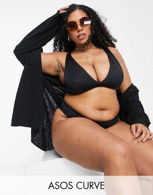 ASOS DESIGN Curve - Mix og match - Sort bikinitop med bredt underbånd og dyb udskæring