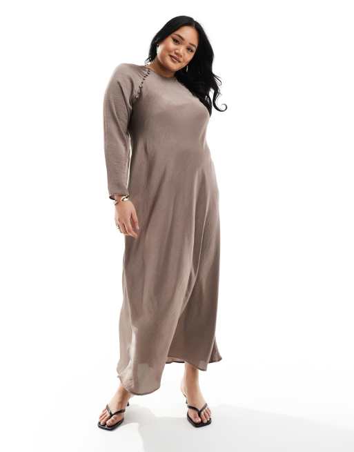 ASOS DESIGN Curve - Mokkabrun maxikjole med skråsnit og knapper i satin