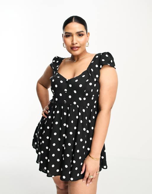 ASOS DESIGN Curve - Monokrom tea-minikjole i viskose med bustedetalje og knapper og prikker