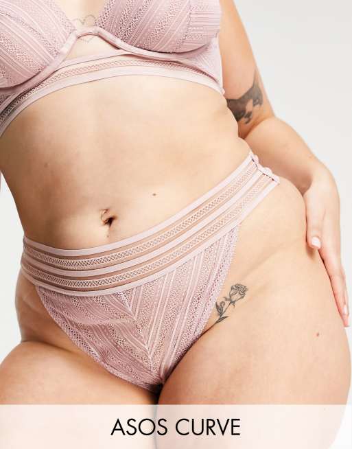 ASOS DESIGN Curve - Nettie - G-streng i støvet pink fiskenet og filament