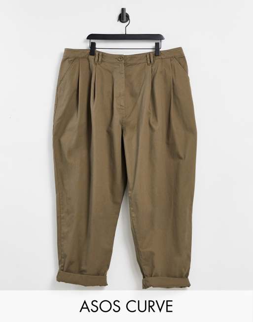 ASOS DESIGN Curve - Olivengrønne ovale peg-bukser med plisseringer foran