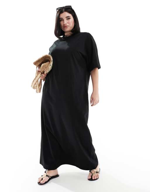 ASOS DESIGN Curve - Oversized sort T-shirt-kjole med blonder