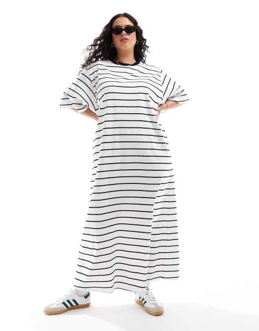 ASOS DESIGN Curve - Oversized T-shirt-kjole i midaxilængde med hvide og sorte striber