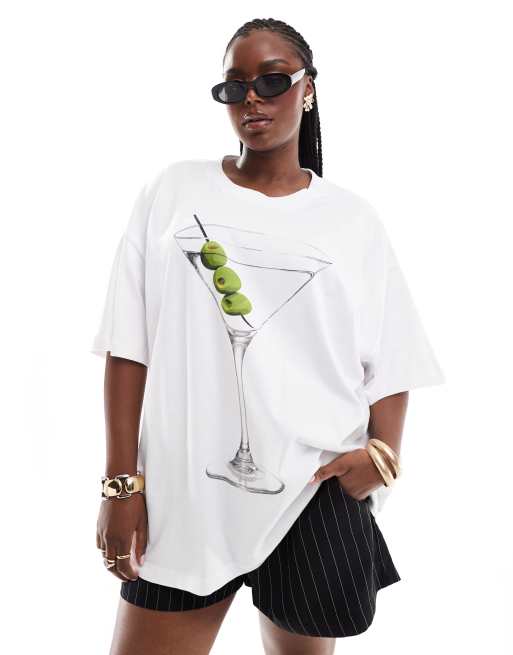 ASOS DESIGN Curve - Oversized t-shirt med martini-grafik i hvid