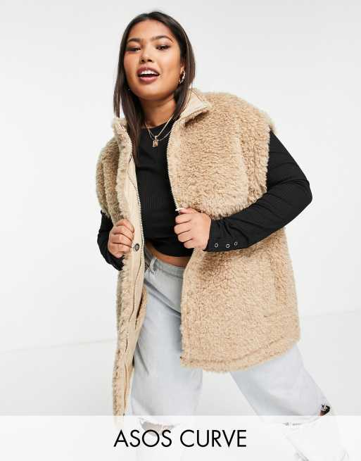 ASOS DESIGN Curve - Oversized vest i kamelfarvet imiteret lammeskind