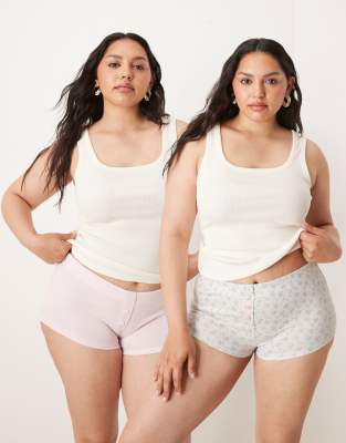 ASOS DESIGN Curve - Pakke med 2 par boksershorts i pointelle-stof i lyserød/med blomstermønster