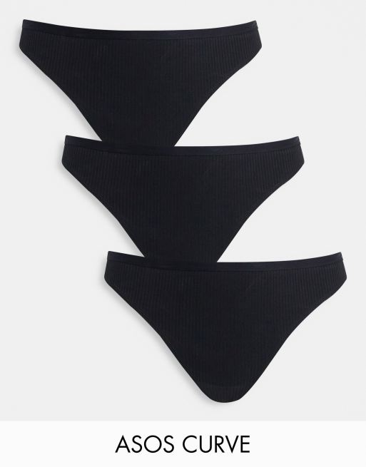 ASOS DESIGN Curve - Pakke med 3 par ribstrikkede G-strenge i sort