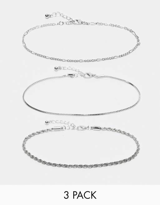 ASOS DESIGN Curve - Pakke med 3 sølvfarvede ankelkæder med blandet kædedesign