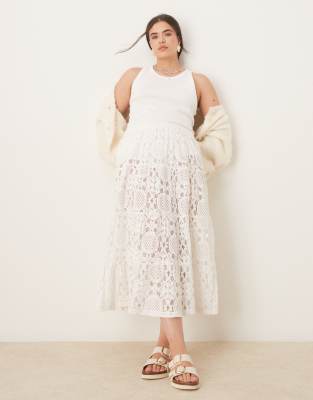 ASOS DESIGN Curve - Premium - Hvid og tekstureret maxinederdel i transparent blondestof