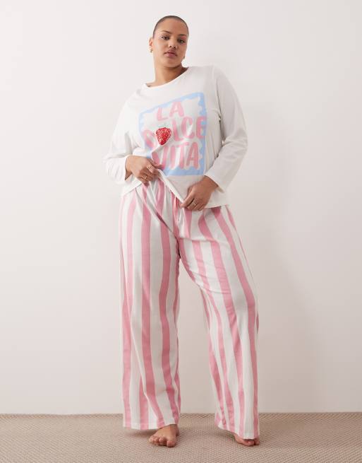 ASOS DESIGN Curve - Pyjamassæt med oversized T-shirt med lange ærmer og 'La Dolce Vita'-print og pyjamasbukser