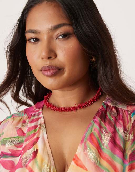 ASOS DESIGN Curve - Rød halskæde med imiteret sten og T-stang