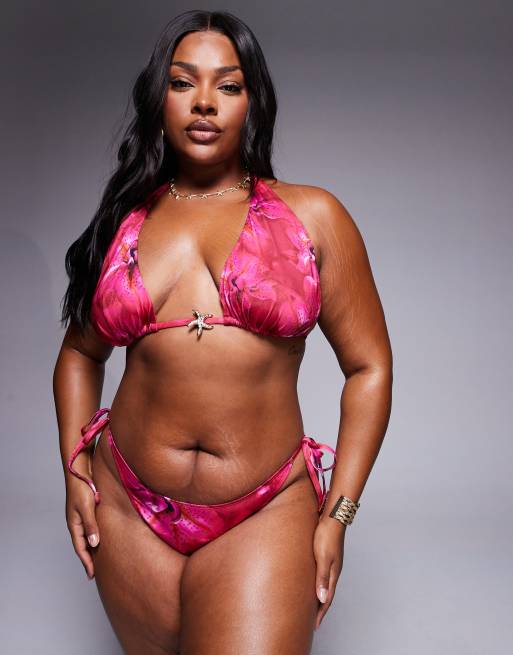 ASOS DESIGN Curve - Rio - Pink bikini med blomstermønster