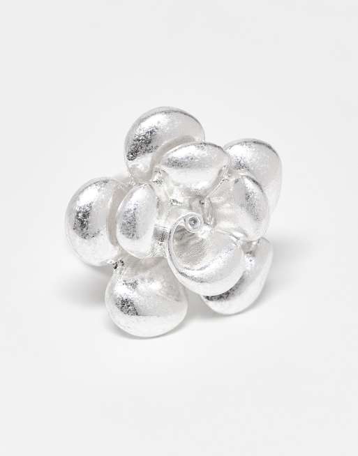 ASOS DESIGN Curve - Sølvfarvet statement-ring med blomsterprint
