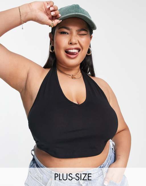 ASOS DESIGN Curve - Sort croptop med halterneck