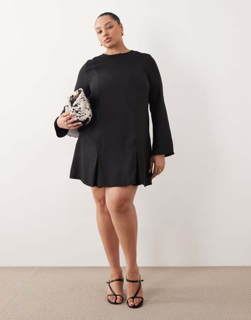 ASOS DESIGN Curve - Sort langærmet minikjole med kiler