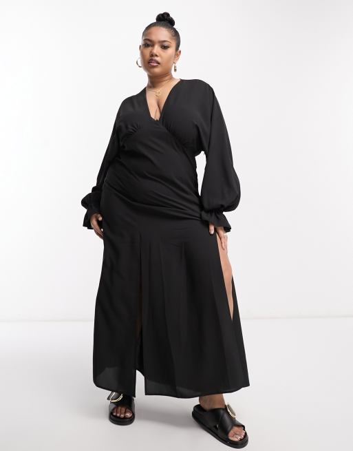ASOS DESIGN Curve - Sort maxikjole med flagermusærmer og dyb udskæring