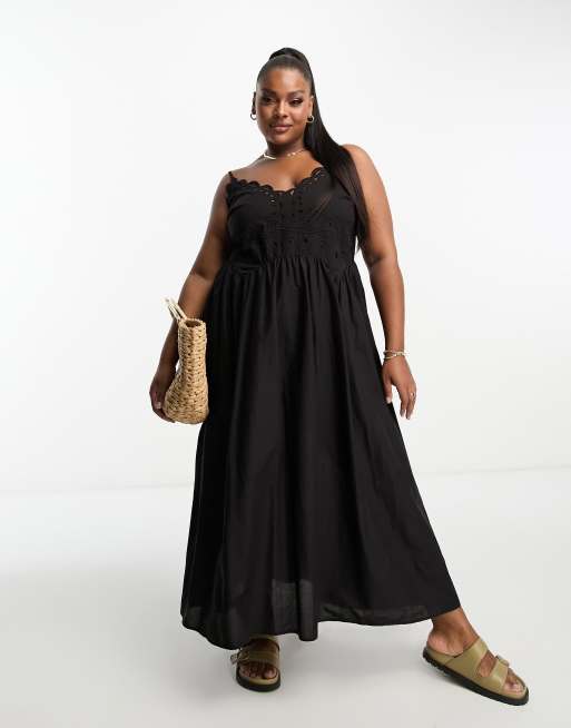 ASOS DESIGN Curve - Sort midi-sommerkjole med skater-snit og udskæringsdetaljer
