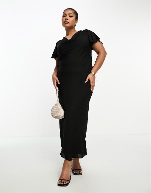 ASOS DESIGN Curve - Sort midikjole med vandfaldsudskæring og flagrende ærmer