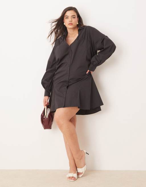 ASOS DESIGN Curve - Sort mini-skjortekjole med rynket panel