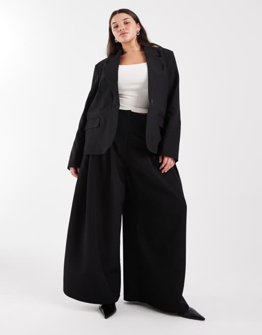ASOS DESIGN Curve - Sort sæt med pull on-bukser og skræddersyet blazer