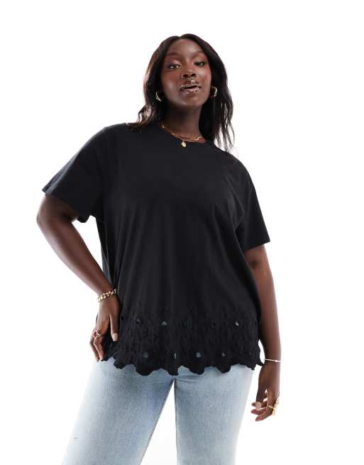 ASOS DESIGN Curve - Sort T-shirt med broderet kant