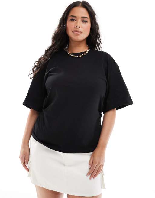 ASOS DESIGN Curve - Sort T-shirt med korsettalje