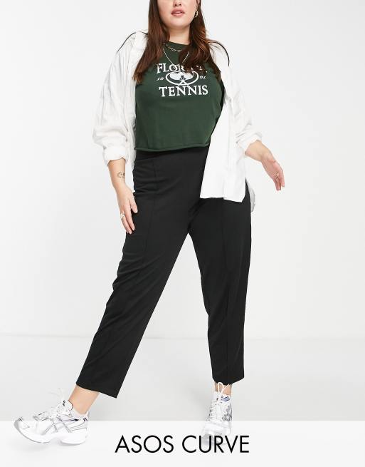 ASOS DESIGN Curve - Sorte peg-bukser med pintucks i ponte