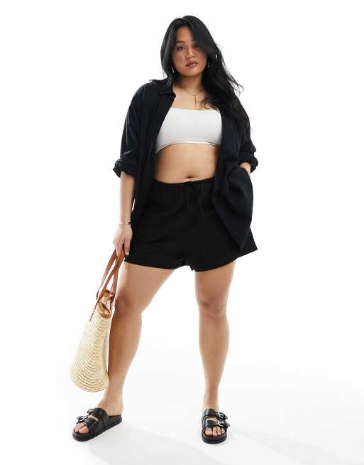 ASOS DESIGN Curve - Sorte pull on-shorts med hør