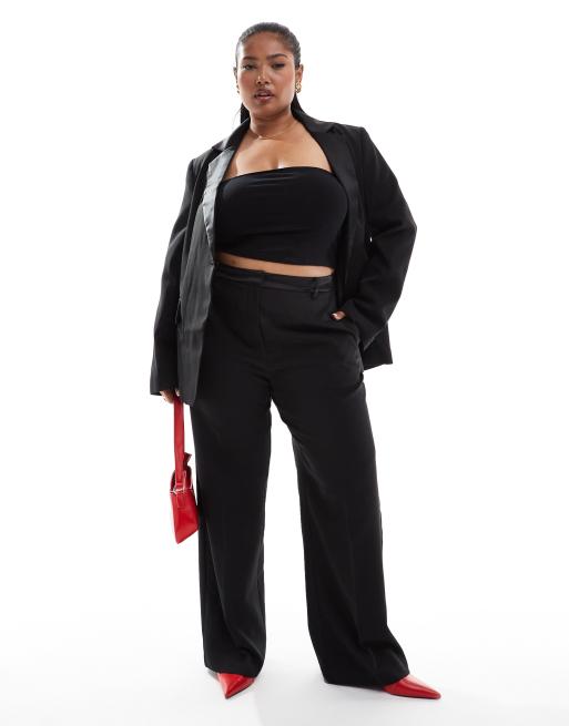 ASOS DESIGN Curve - Sorte skræddersyet smokingbukser med lige ben - Del af sæt