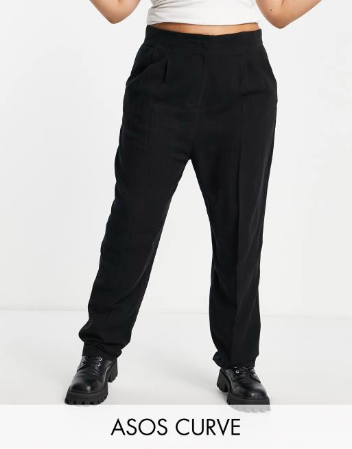 ASOS DESIGN Curve - Sorte tapered mom-bukser i blød hør