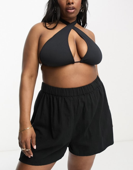 ASOS DESIGN Curve - Sorte teksturet strandsæt