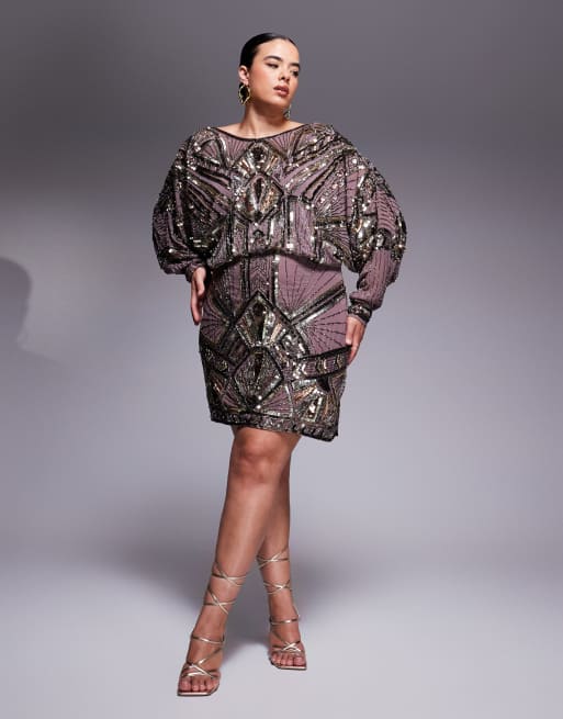 ASOS DESIGN Curve - Støvet lyslilla minikjole med vandfaldsudskæring på ryggen, lineær udsmykning og flagermusærmer