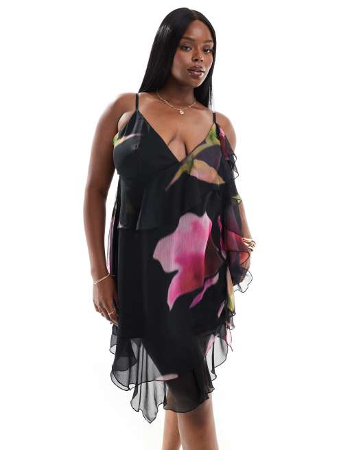 ASOS DESIGN Curve - Sundress med flæser og blomsterprint i dobbeltlag