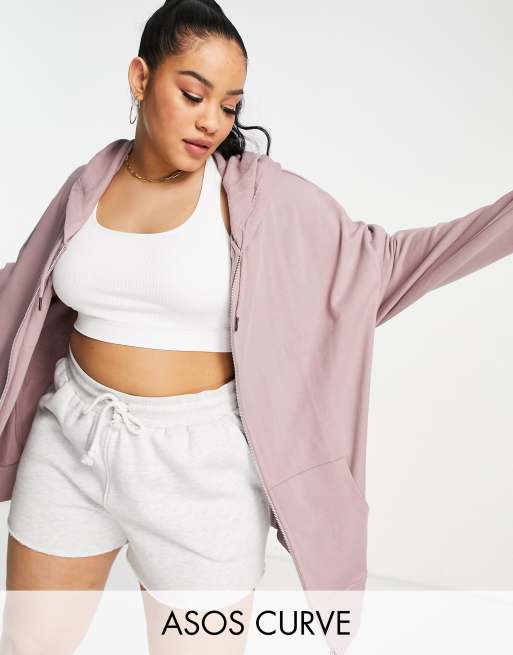 ASOS DESIGN Curve - Super-oversized hættetrøje med gennemgående lynlås i grålilla bomuld