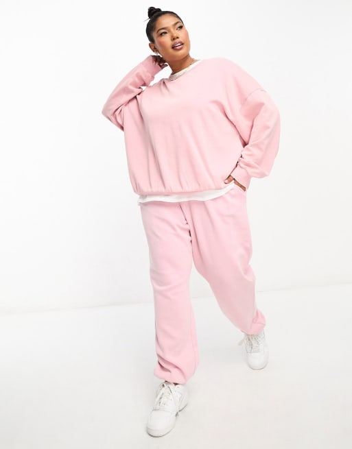 ASOS DESIGN Curve - Sweatsæt i pink vask