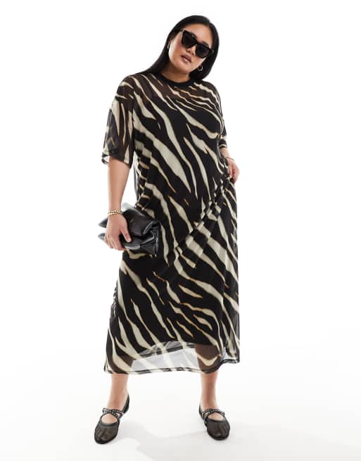 ASOS DESIGN Curve - T-shirt-kjole i midaxi-længde med dyreprint i mesh