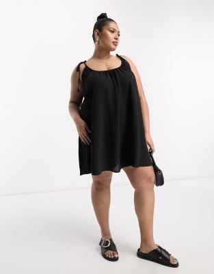 ASOS DESIGN Curve - Trapez-formet slip-minikjole med bindestropper i sort