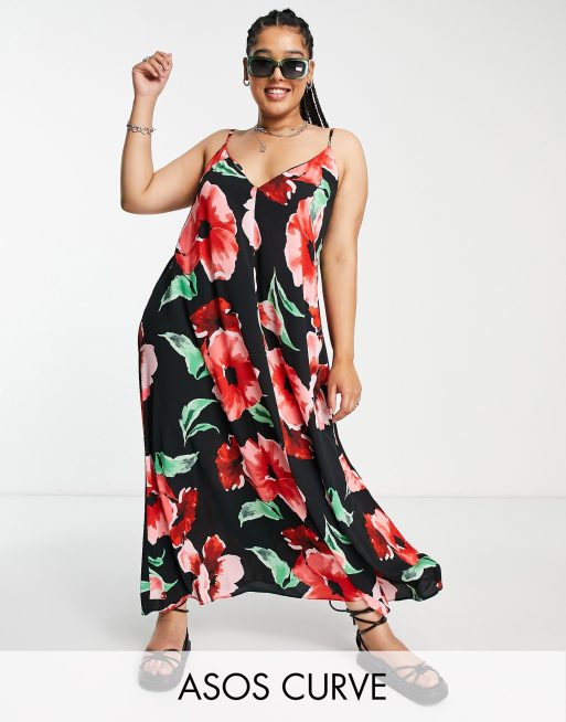 ASOS DESIGN Curve - Trapez slip-maxikjole med stort blomsterprint