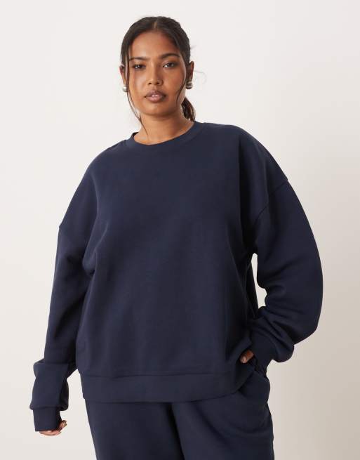 ASOS DESIGN Curve - Ultimate - Marineblå oversized sweatshirt med børstet tekstur på indersiden