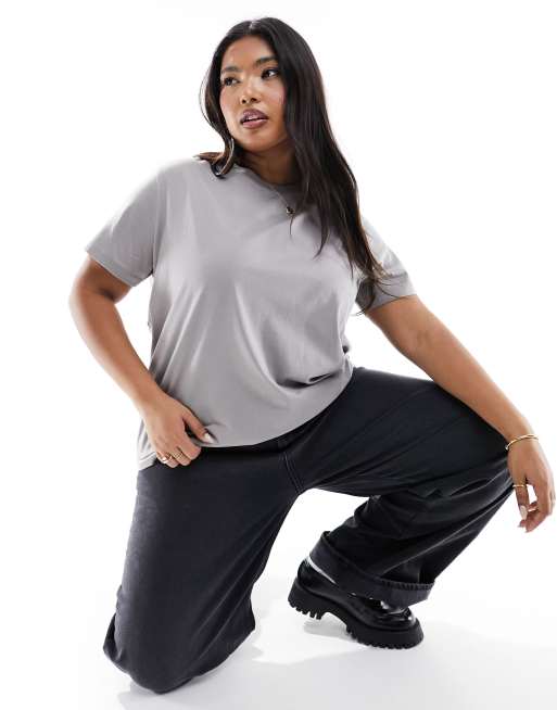 ASOS DESIGN Curve - Ultimativ T-shirt med rund hals i gråmeleret bomuld