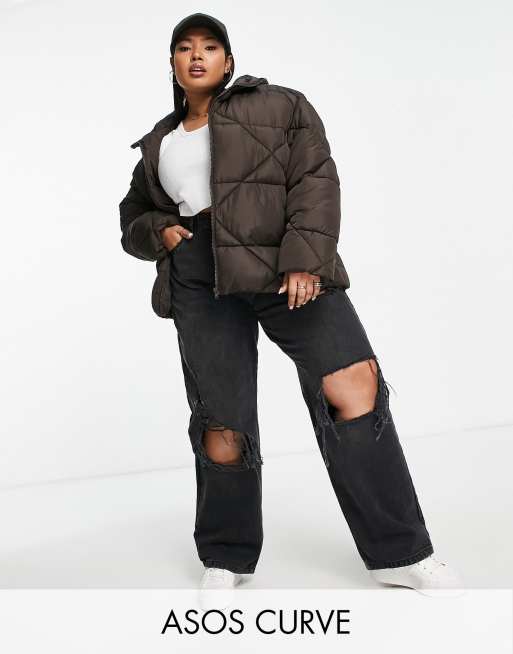 ASOS DESIGN Curve - Vatteret dynejakke i chokoladebrun