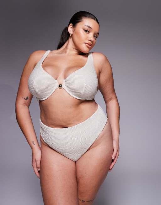 ASOS DESIGN Curve - Winter - Bikinitop metallisk cremehvidt krølstof