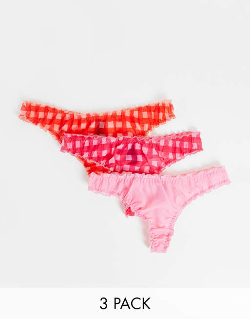ASOS DESIGN - Pakke med 3 G-strenge i mesh med flæser og gingham-tern