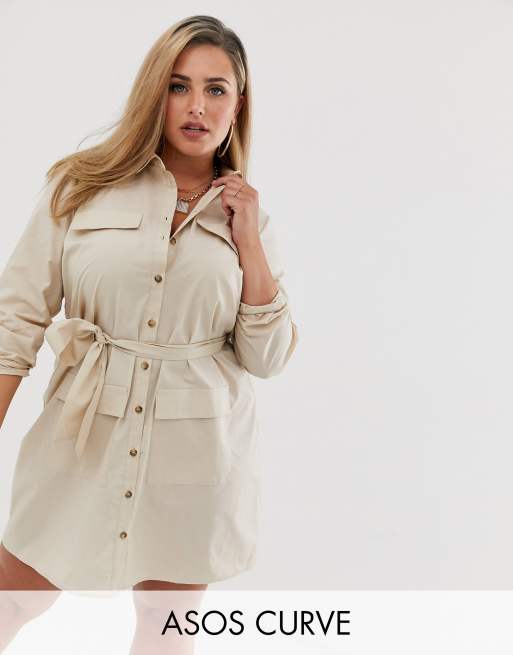 Mini funktions-skjortekjole med bælte i bomuld fra ASOS DESIGN Curve
