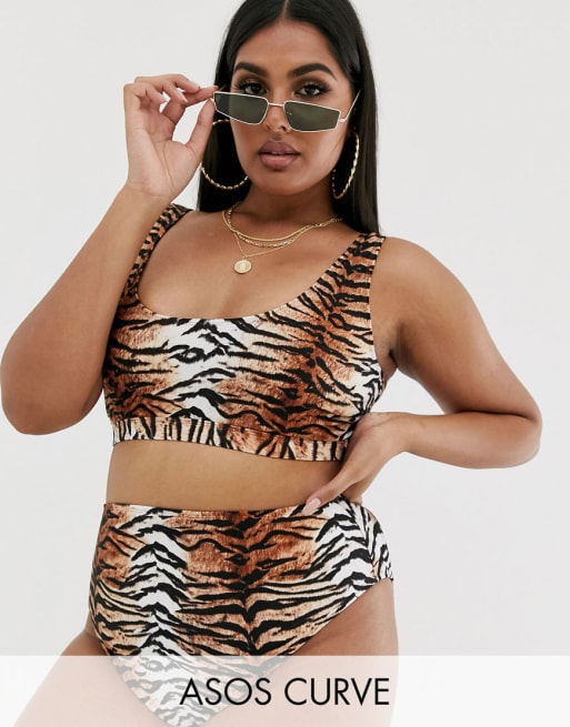 Mix og match bikini i natur-tigerprint fra ASOS DESIGN Curve