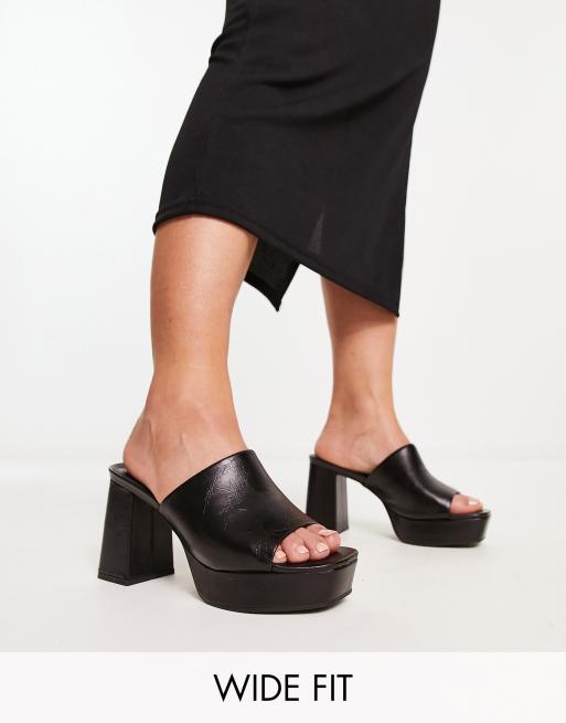 ASOS DESIGN Wide Fit - Harmonize - Sorte plateau-mules med mellemhøj hæl