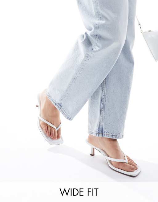 ASOS DESIGN Wide Fit - Heatwave - Hvide sandaler med tårem og mellemhøj hæl