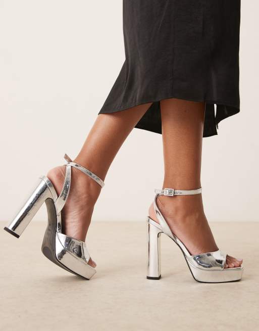 ASOS DESIGN - Wide Fit - Naples - Sølvfarvede Barely There-plateau-sandaler med blokhæl